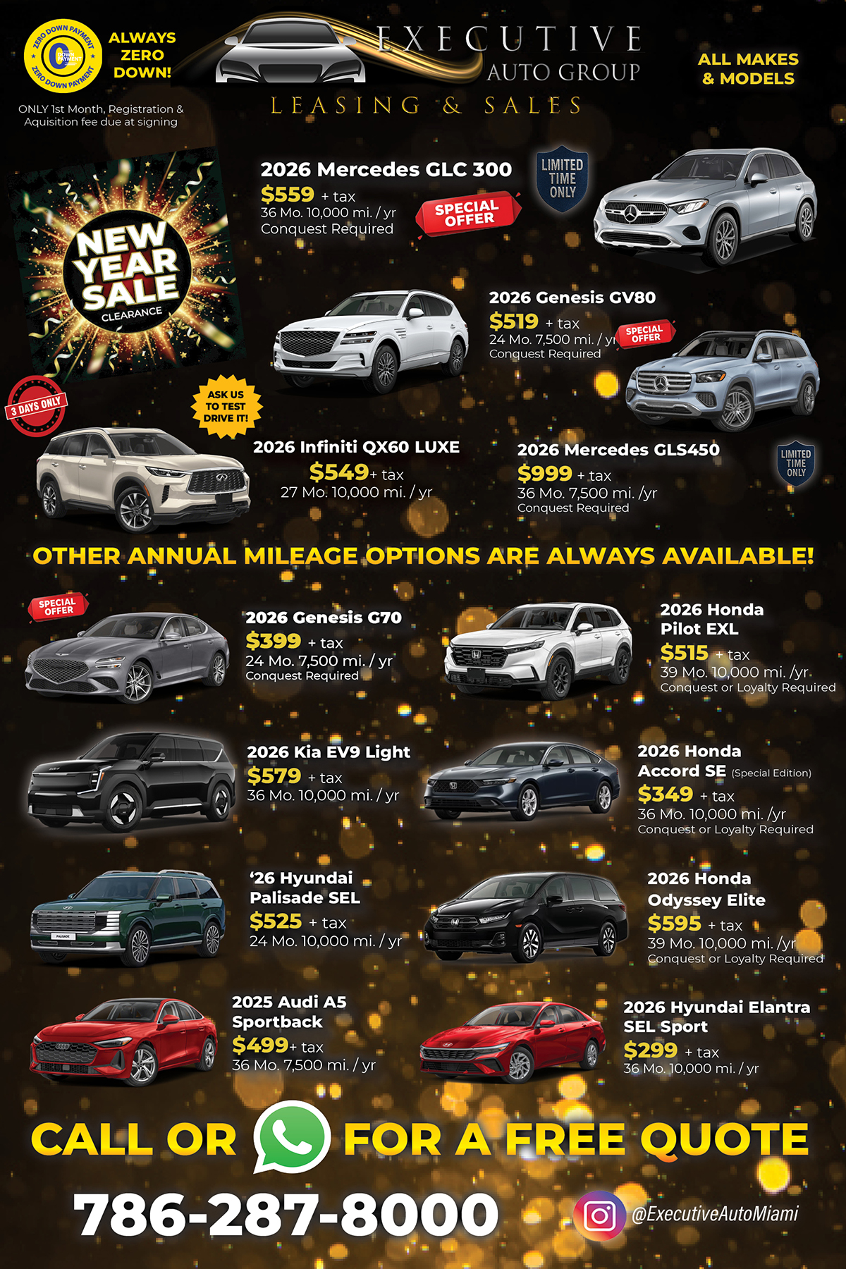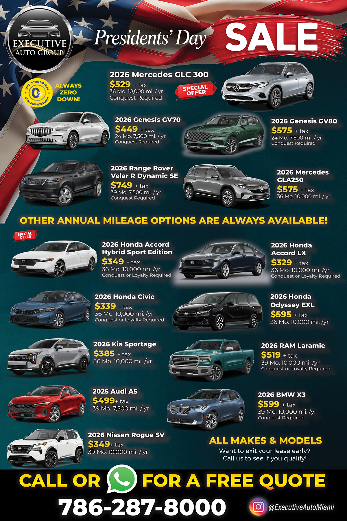 We deliver your new vehicle to your door and return your old vehicle for you to achieve the most seamless auto leasing/sales experience possible. For 20 years, we have made your time, money and comfort our highest priority.